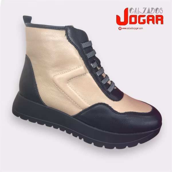 F 36601 Botín para señora sport confort tallas 36-41 de color taupe combinado negro (Sólo en cajas completas de 12 pares)