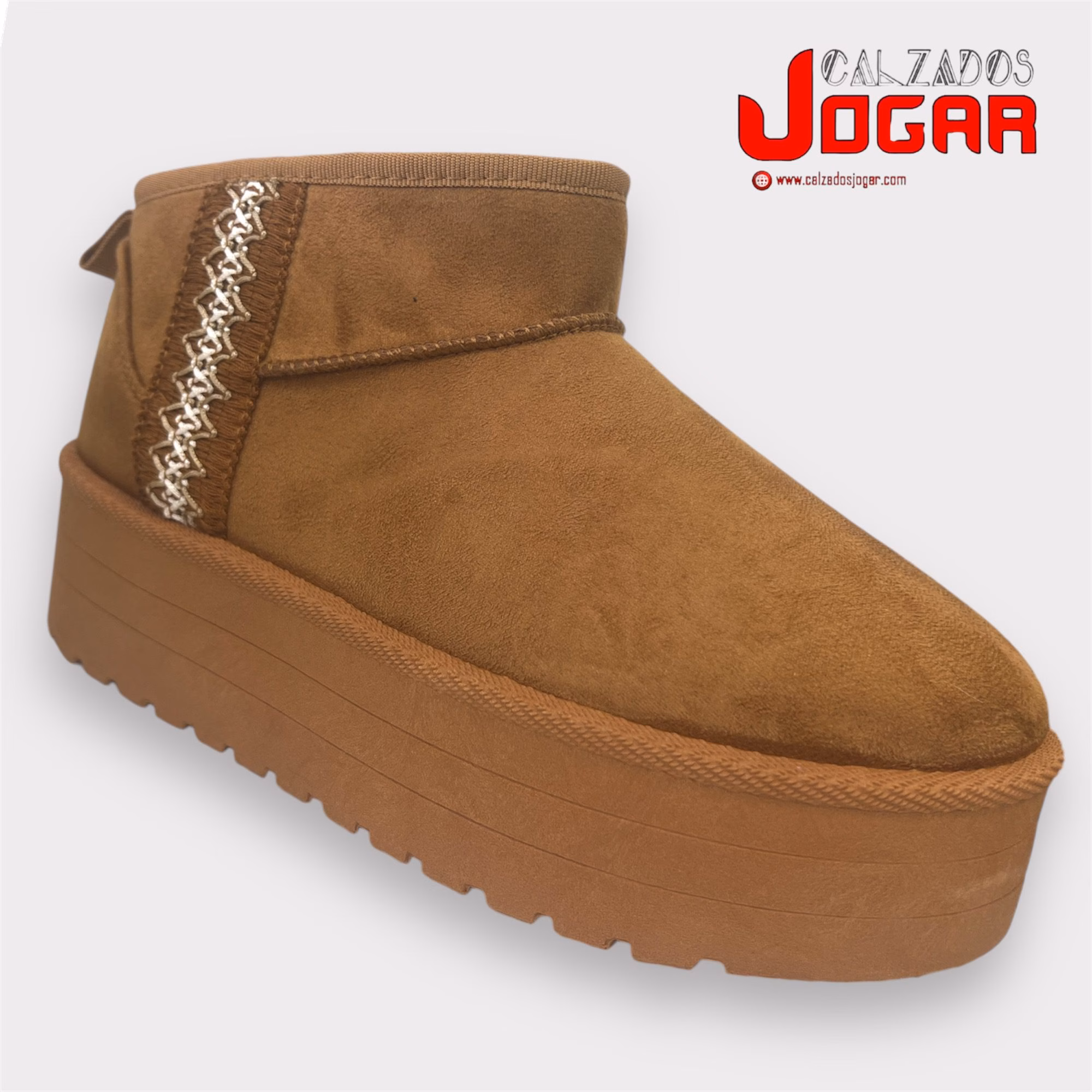 PL003 Botín casual para señora 36-41 en antelina y piso de eva de color camel (Sólo en cajas completas de 12 pares)