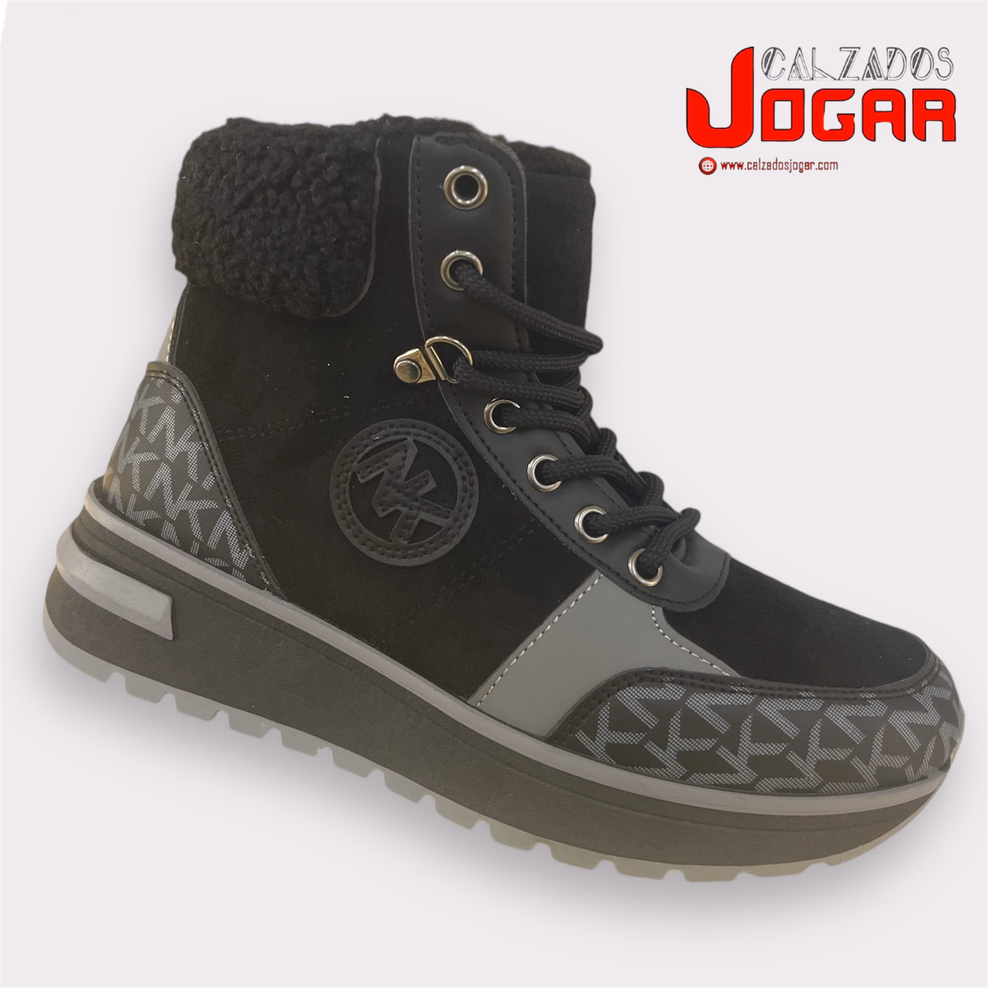 NK 303 Deportivo abotinado para señora sport casual con cuña media tallas 36-41 de color negro (Sólo en cajas completas de 12 pares)