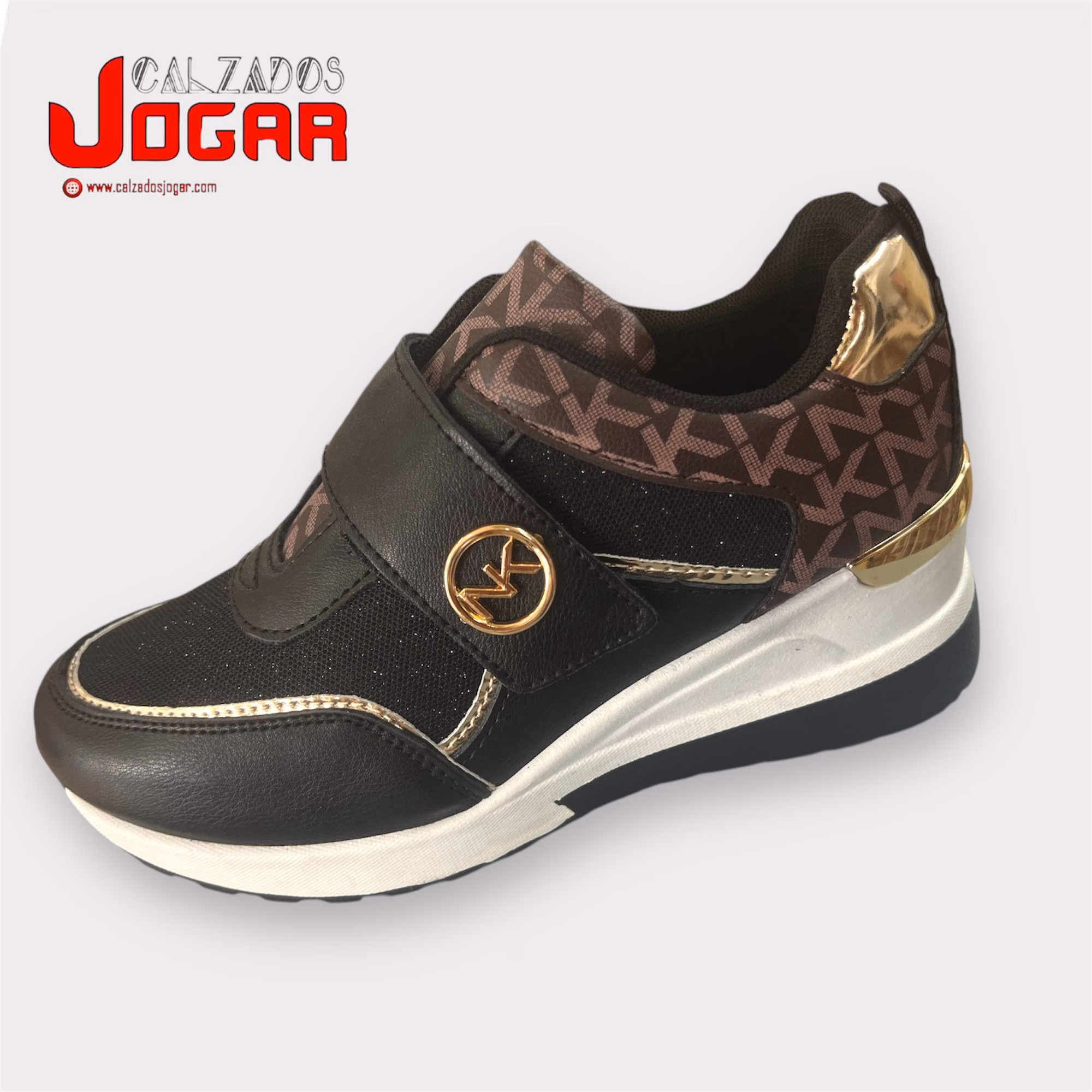 NK 071 Deportivo para señora sport casual con cuña media y velcro tallas 36-41 de color negro (Sólo en cajas completas de 12 pares)