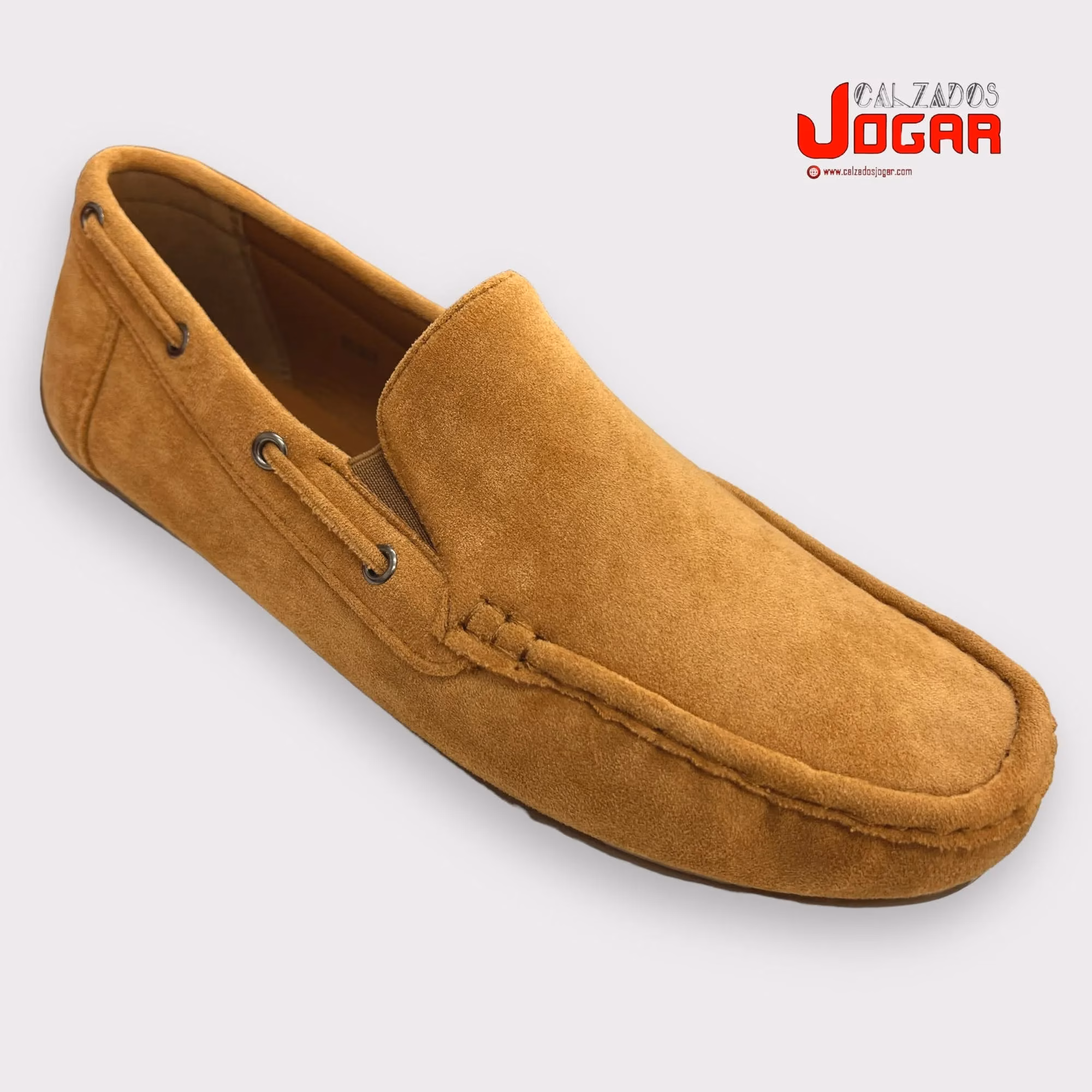 RQ 303 Mocasín para caballero en antelina de color camel 40- 45 (Sólo en cajas completas de 12 pares)