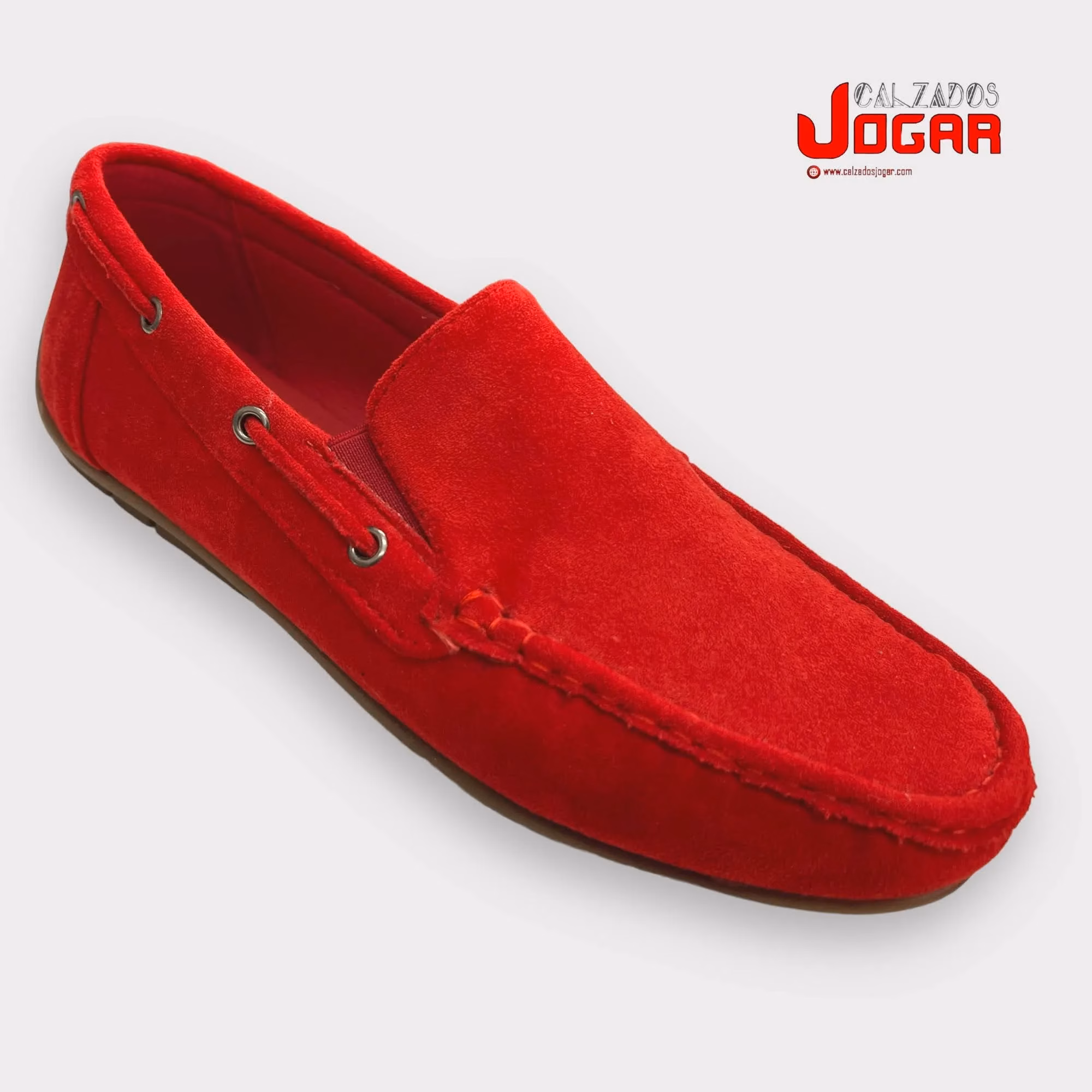 RQ 303 Mocasín para caballero en antelina de color rojo 40- 45 (Sólo en cajas completas de 12 pares)