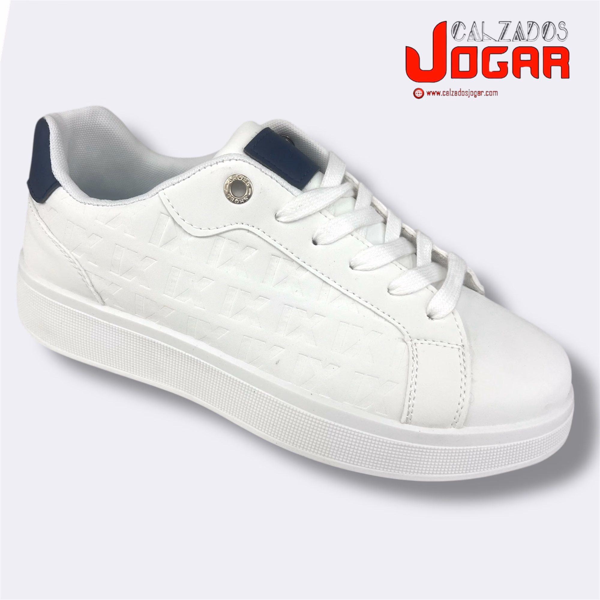 J 611 Casual para caballero de color blanco con azul tallas 40-45 (Sólo en cajas completas de 12 pares)