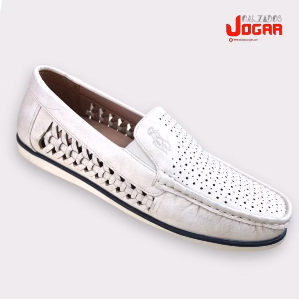 130 Mocasín de caballero náutico picado en color blanco tallas 40-45 (Sólo en cajas completas de 12 pares)