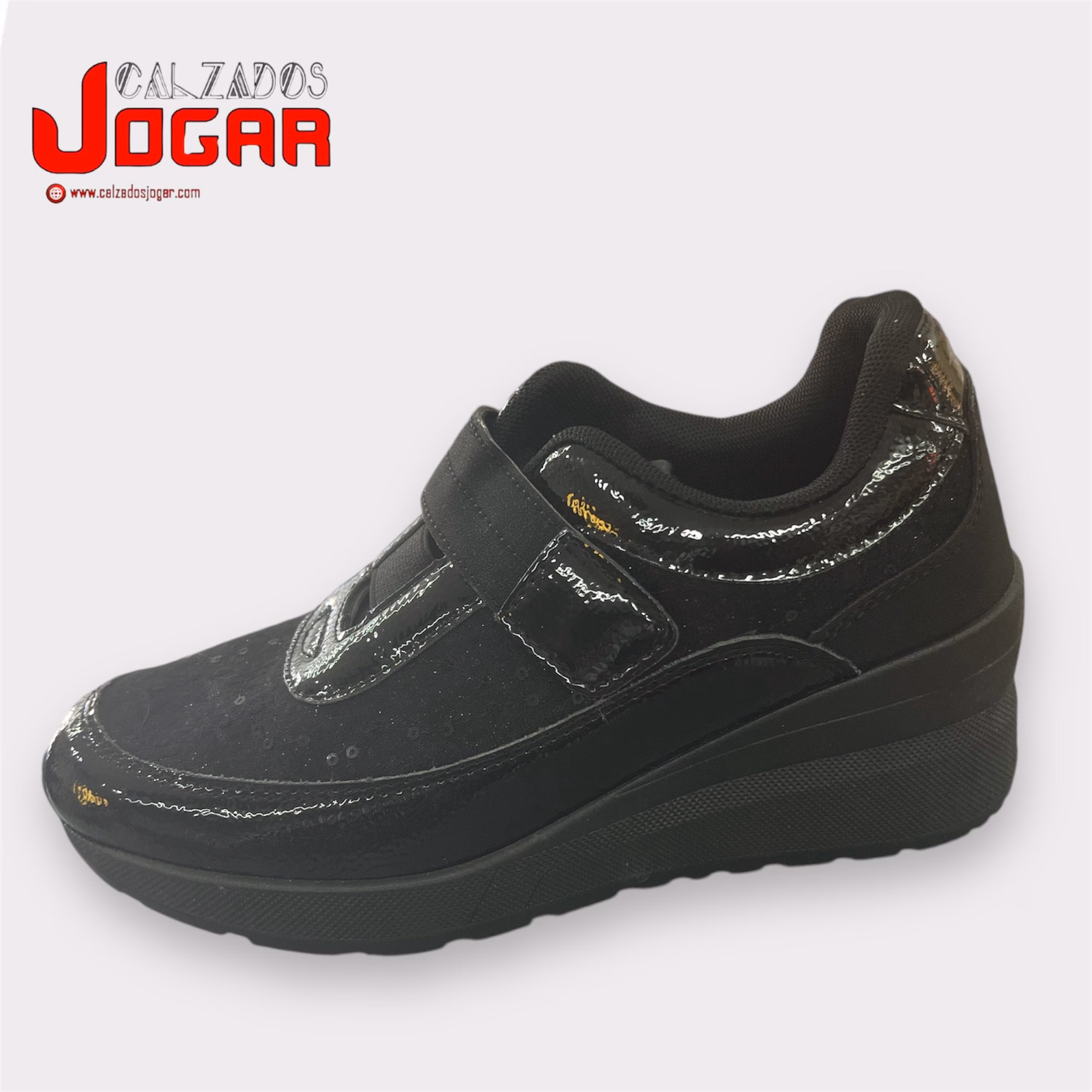 J 272 Zapato para señora sport tallas 36-41 de color negro con velcro (Sólo en cajas completas de 12 pares)