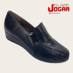 1822 Zapato confort para señora ancho especial en napa de color negro, elásticos laterales en la pala con grabado negro, tallas 35 al 41, fabricado en España (Surtido libre)